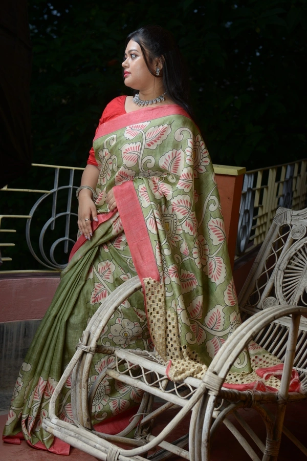 Pure Tussar Saree (also spelled Tasar or Tussah) is a type of silk saree made from the silk of wild silkworms found mainly in forested areas of India, especially in Jharkhand, Chhattisgarh, Bihar, and parts of West Bengal.