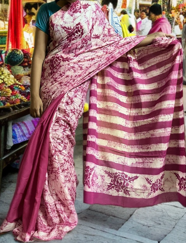 Crack Batik Half Body With Hand Art Design In Pallu