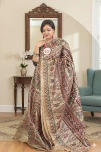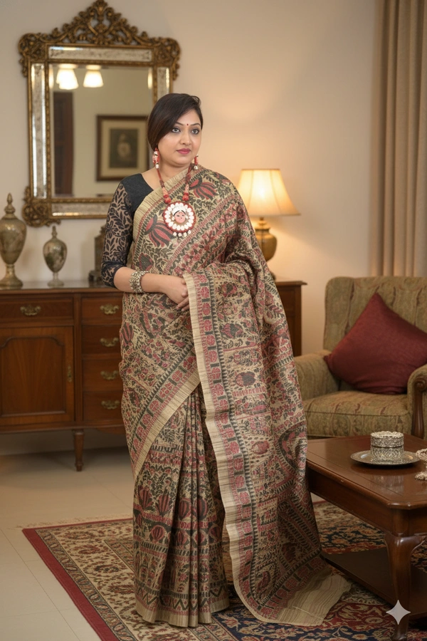 Tussar Ghicha Saree is a beautiful combination of two traditional types of silk—Tussar silk and Ghicha silk. These sarees are known for their raw texture, elegant drape, and earthy appeal.