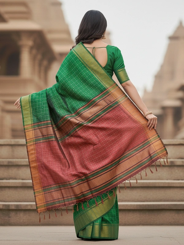 Pure Katan Silk is a premium variety of silk known for its luxurious texture, durability, and natural sheen. It is one of the finest types of silk used in traditional Indian sarees. Made from pure silk threads, both warp and weft, without any blends or synthetic fibers.