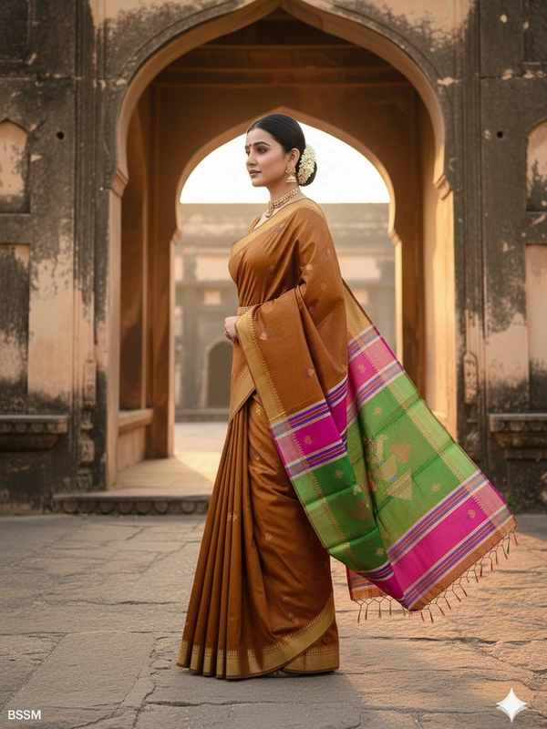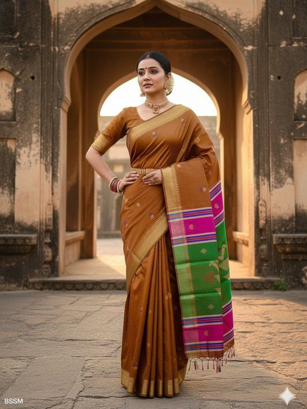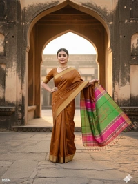 Pure Katan Silk is a premium variety of silk known for its luxurious texture, durability, and natural sheen. It is one of the finest types of silk used in traditional Indian sarees. Made from pure silk threads, both warp and weft, without any blends or synthetic fibers.
