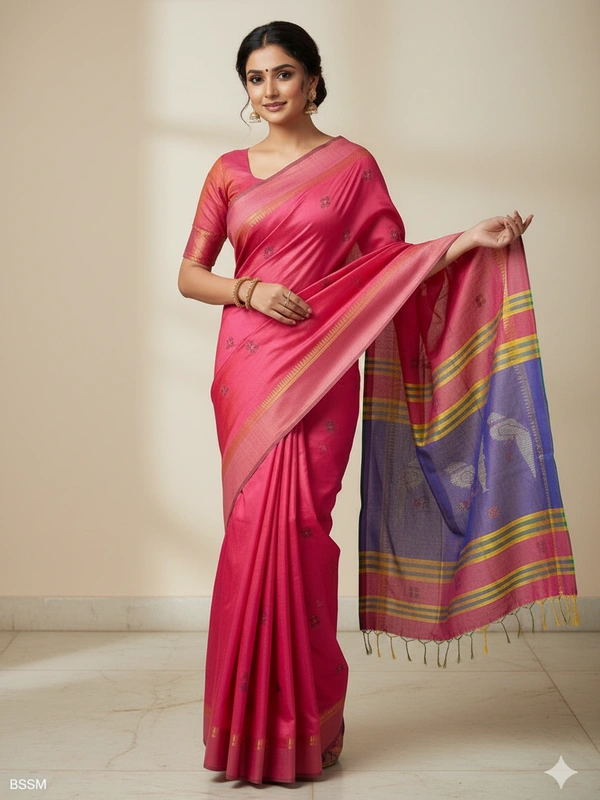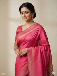 Pure Katan Silk is a premium variety of silk known for its luxurious texture, durability, and natural sheen. It is one of the finest types of silk used in traditional Indian sarees. Made from pure silk threads, both warp and weft, without any blends or synthetic fibers.