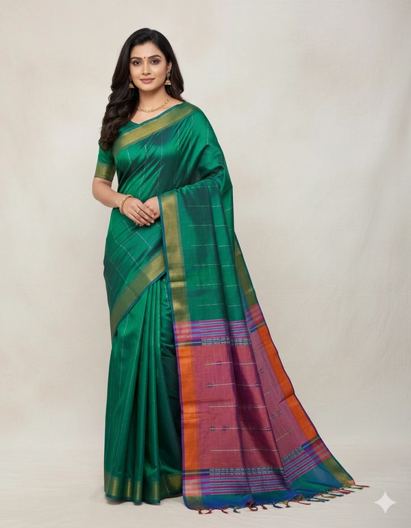 Pure Katan Silk is a premium variety of silk known for its luxurious texture, durability, and natural sheen. It is one of the finest types of silk used in traditional Indian sarees. Made from pure silk threads, both warp and weft, without any blends or synthetic fibers.