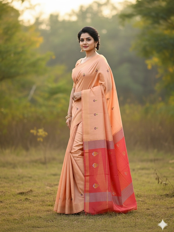 Pure Katan Silk is a premium variety of silk known for its luxurious texture, durability, and natural sheen. It is one of the finest types of silk used in traditional Indian sarees. Made from pure silk threads, both warp and weft, without any blends or synthetic fibers.