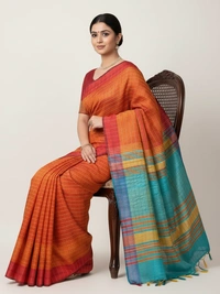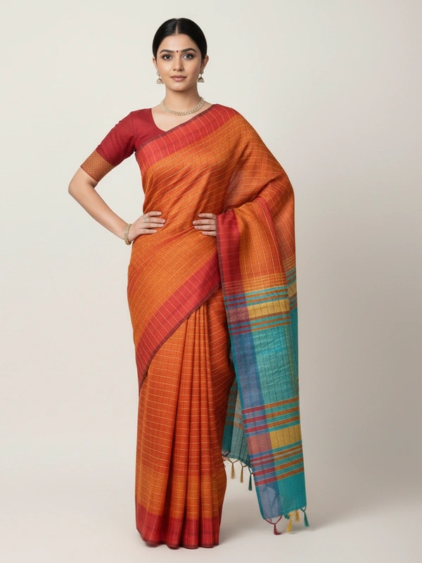 Pure Katan Silk is a premium variety of silk known for its luxurious texture, durability, and natural sheen. It is one of the finest types of silk used in traditional Indian sarees. Made from pure silk threads, both warp and weft, without any blends or synthetic fibers.