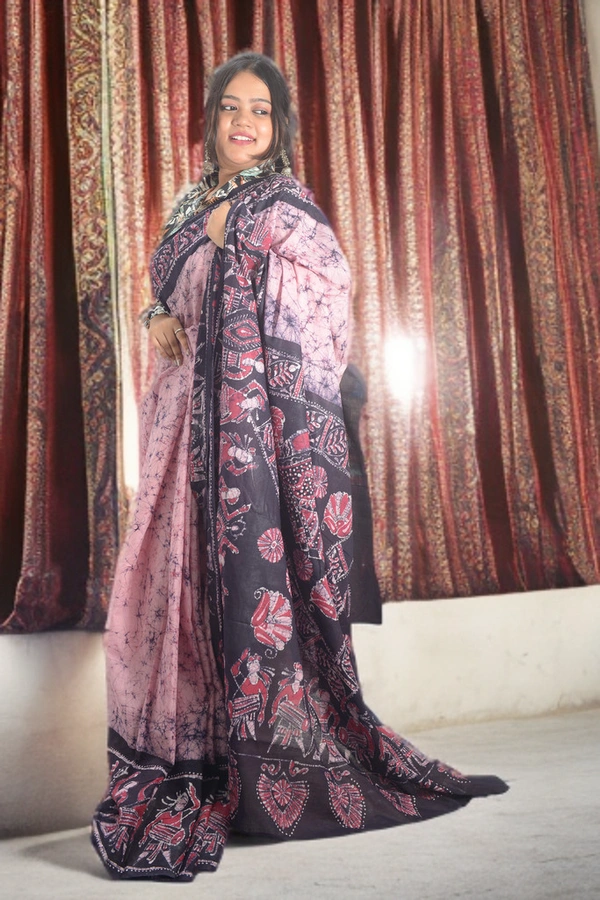 SKU0335 : Pure Khadi Cotton Saree – Handwoven, Batik Print, Lightweight & Breathable Fabric |Hand Batik