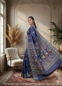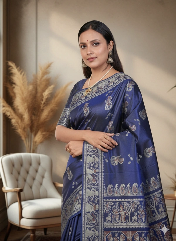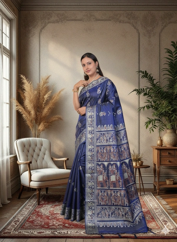 Pure Silk Baluchari Saree is a traditional and luxurious handwoven saree from Bishnupur, West Bengal. Baluchari sarees are made from pure mulberry silk and are characterized by: