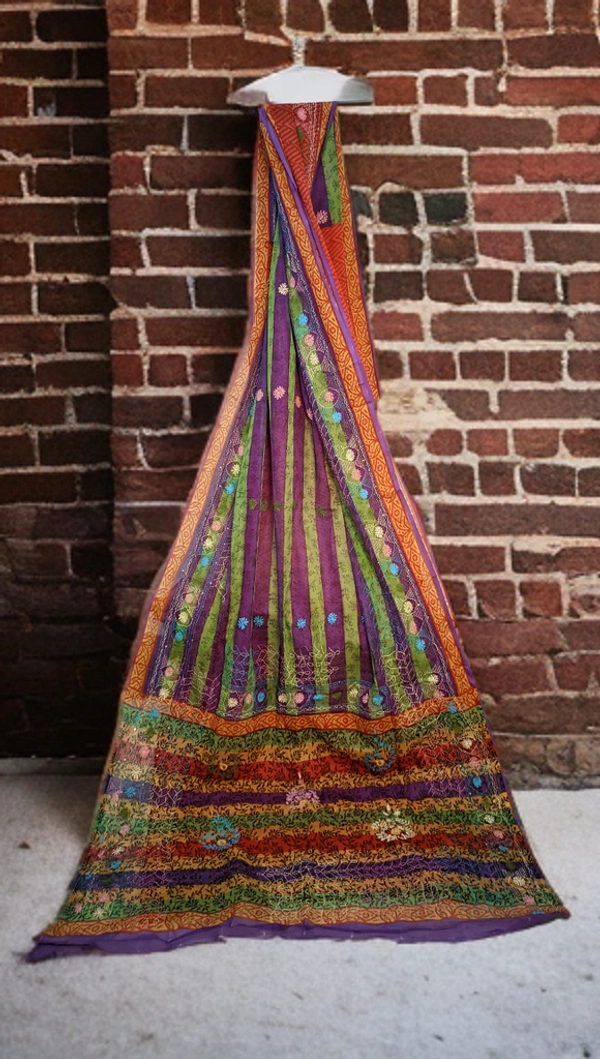 Synthetic,Pure Chiffon, Silk Lambani, Pure Crape Lambani Work, Multi color with Half Maroon