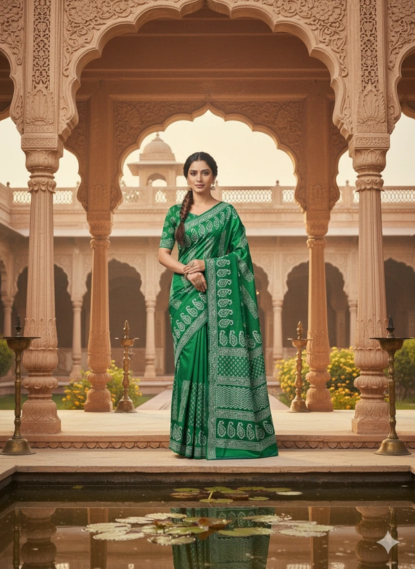 Pure Katan Silk is a premium variety of silk known for its luxurious texture, durability, and natural sheen. It is one of the finest types of silk used in traditional Indian sarees. Made from pure silk threads, both warp and weft, without any blends or synthetic fibers.
