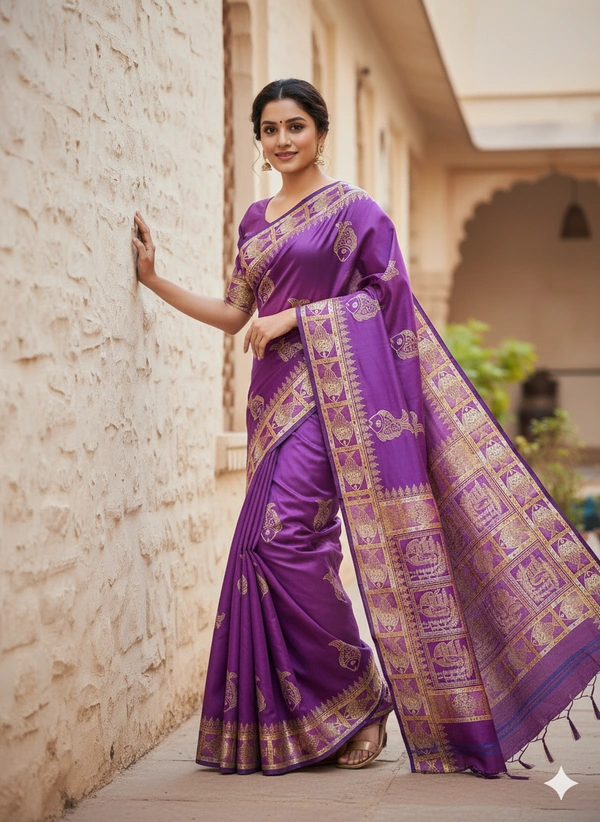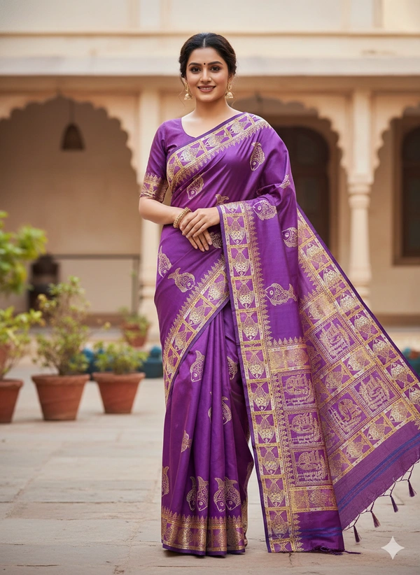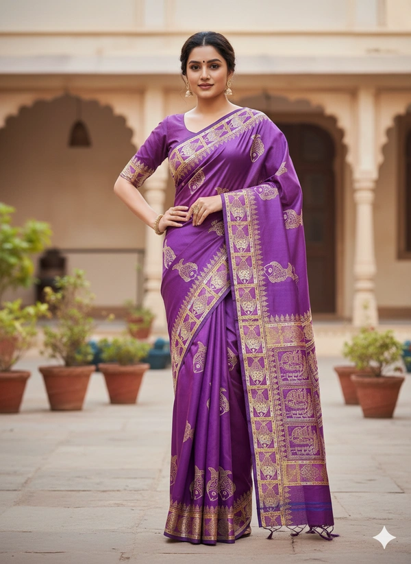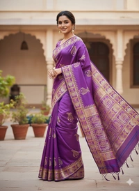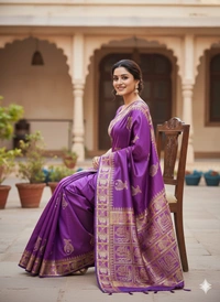 Pure Katan Silk is a premium variety of silk known for its luxurious texture, durability, and natural sheen. It is one of the finest types of silk used in traditional Indian sarees. Made from pure silk threads, both warp and weft, without any blends or synthetic fibers.