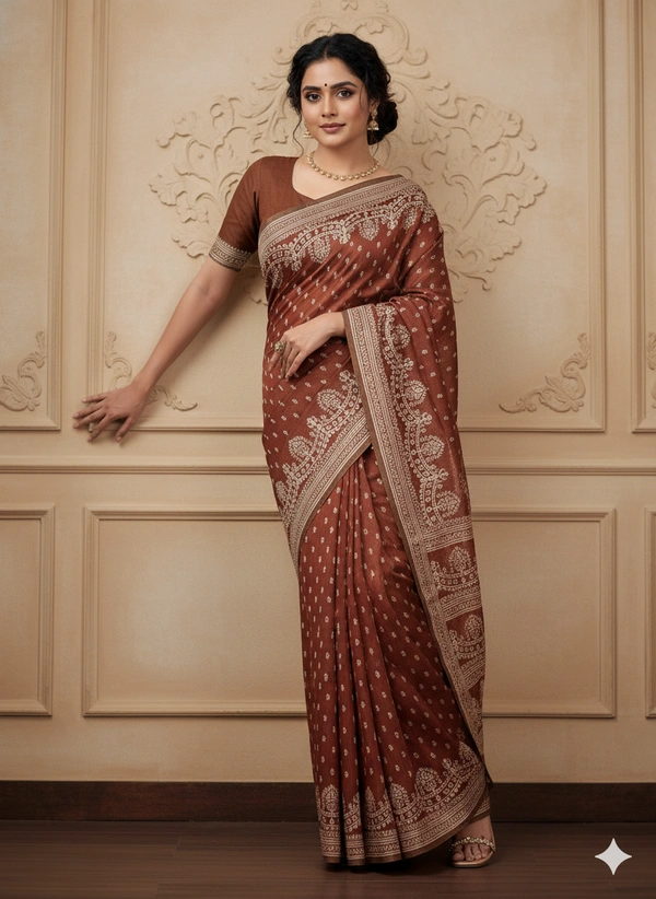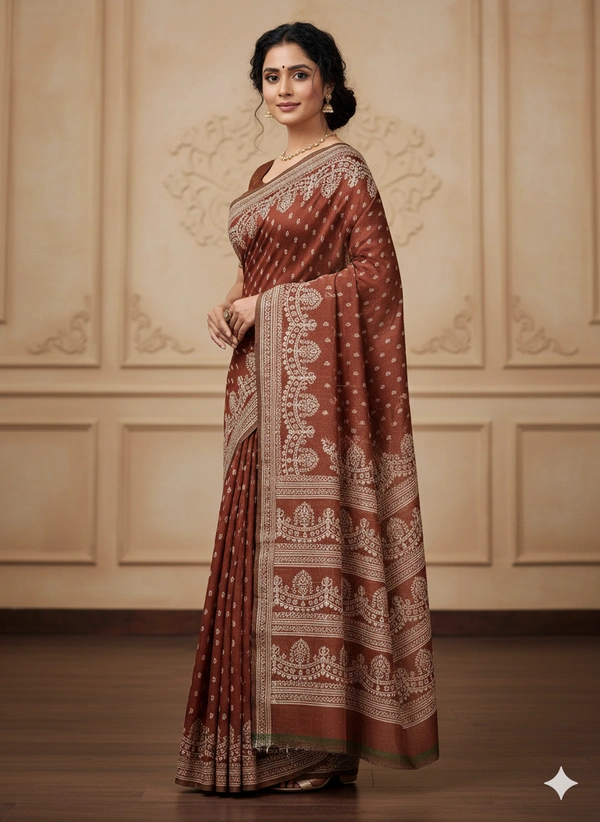 Pure Katan Silk is a premium variety of silk known for its luxurious texture, durability, and natural sheen. It is one of the finest types of silk used in traditional Indian sarees. Made from pure silk threads, both warp and weft, without any blends or synthetic fibers.