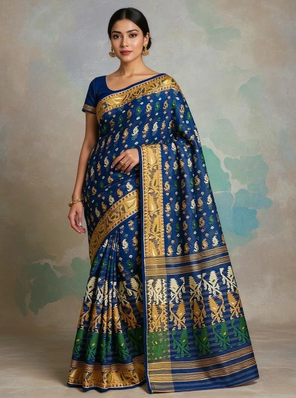 Dhakai Jamdani, Patli Pallu Design, Cotton Blend