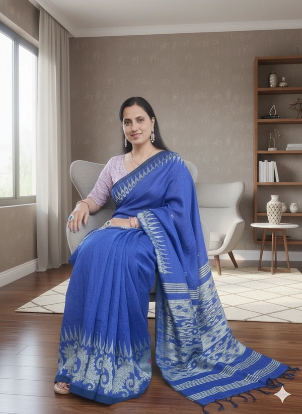 SKU-1103 : Linen Banarasi Ready-To-Wear Saree | With Designer Blouse