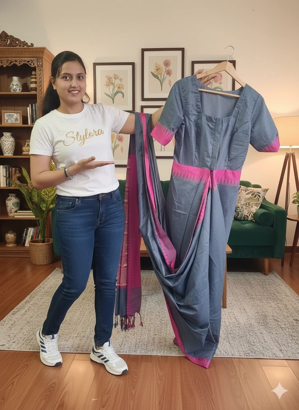 Step into style in seconds with our Ready-to-Wear Saree, designed for women who love the beauty of tradition without the hassle of draping. This pre-stitched saree fits easily like a skirt — just tuck, hook, and go. No pleating, no pins, no fuss.