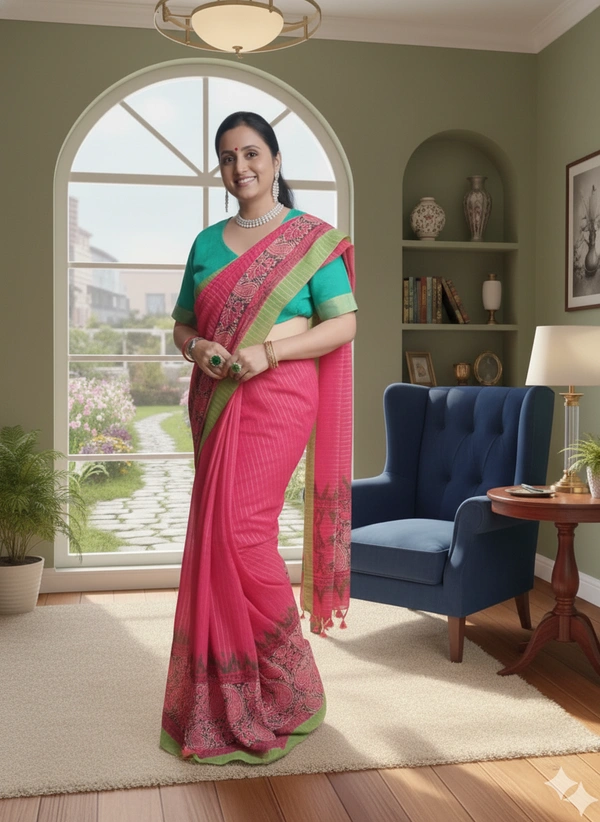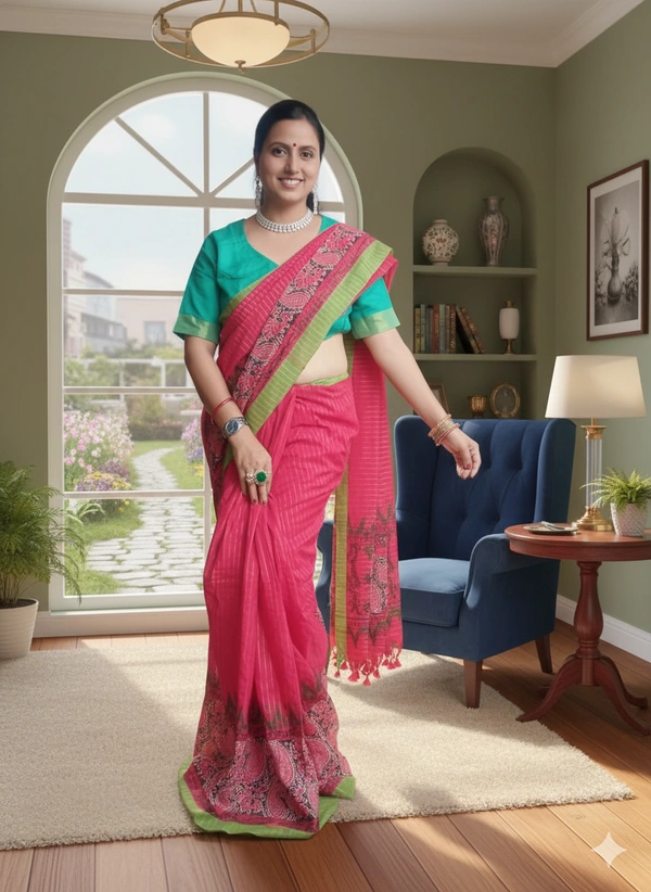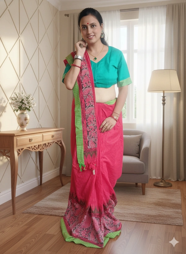 SKU-1107 : Khadi Cotton Ready-To-Wear Saree | Handloom | With Designer Blouse