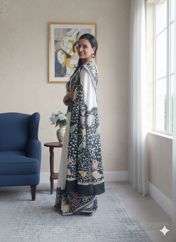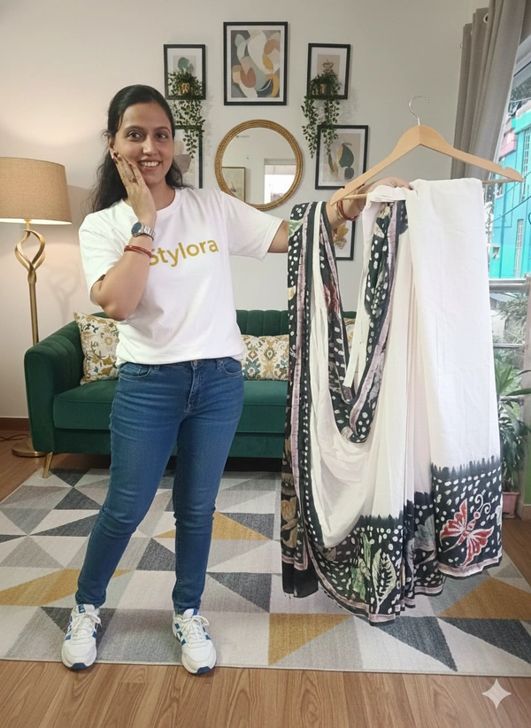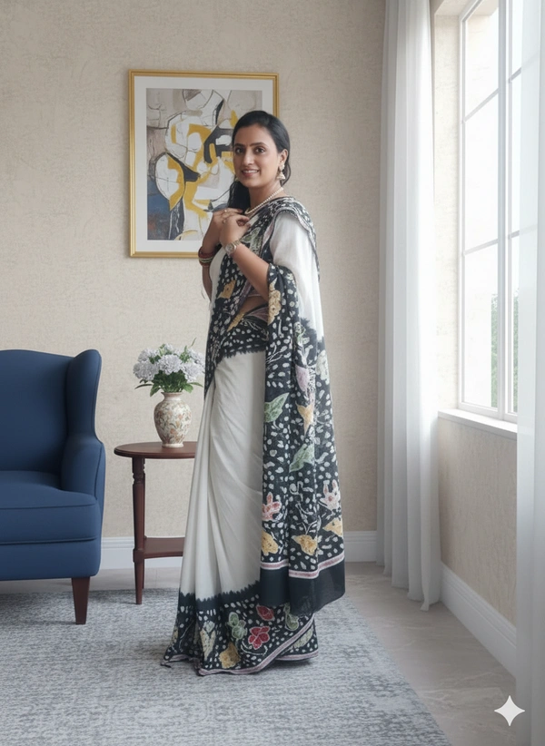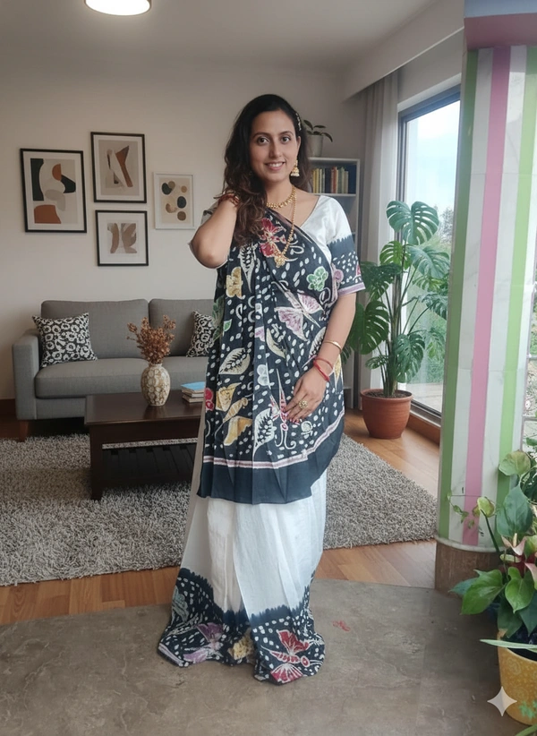 SKU-1109 : Pure Cotton Ready-To-Wear Saree | Batik Print | With Designer Blouse