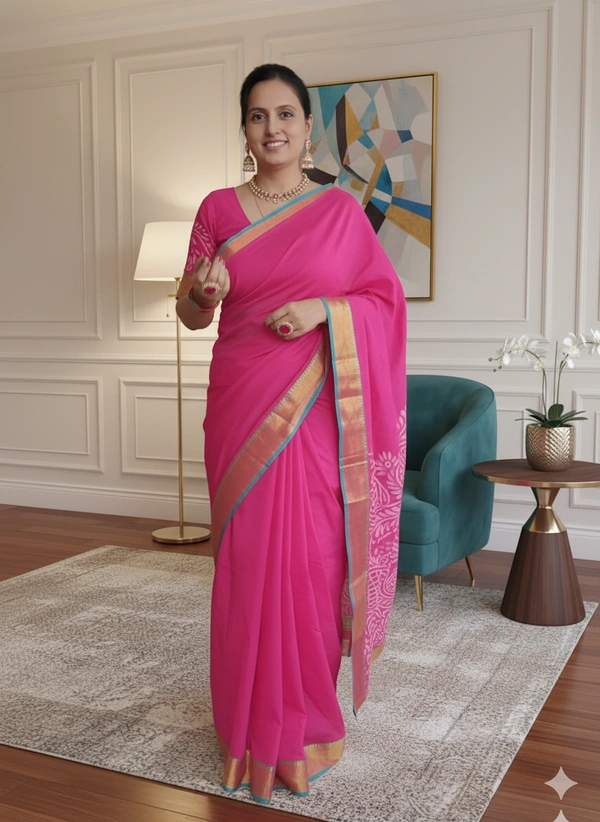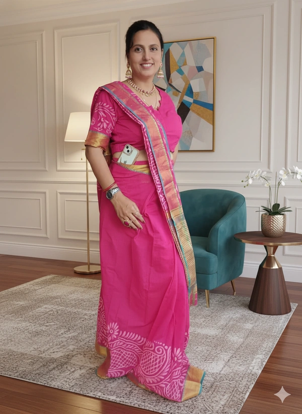 SKU-1099 : Madrasi Tant Ready-To-Wear Saree | Hand Painted | With Designer Blouse