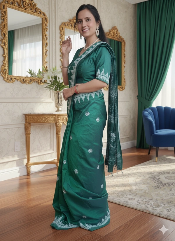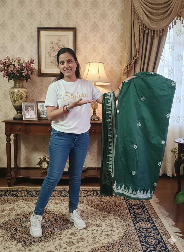 Crafted from premium lightweight fabric, it flows beautifully and stays perfectly in place all day. Ideal for weddings, parties, or daily wear, it combines classic elegance with modern convenience.