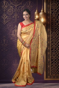 SKU-0755 : Pure Silk Kantha Stitch Saree – Handcrafted Bengal