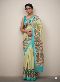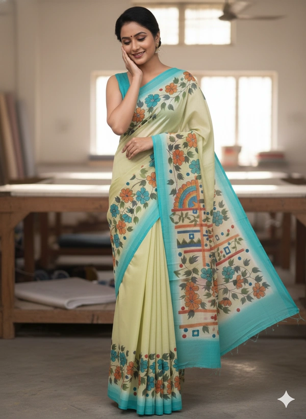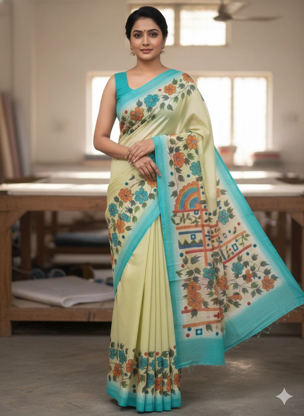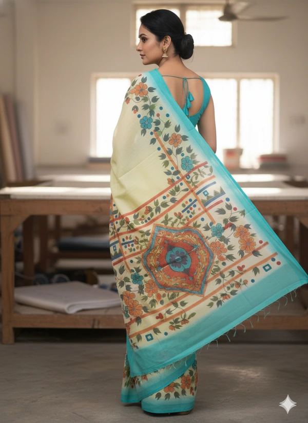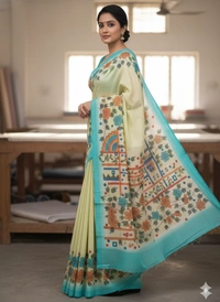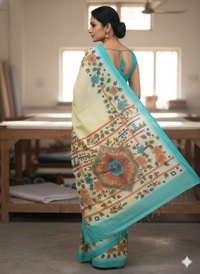 SKU1285 : Elegant Pure Silk Saree – Hand Painted