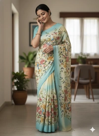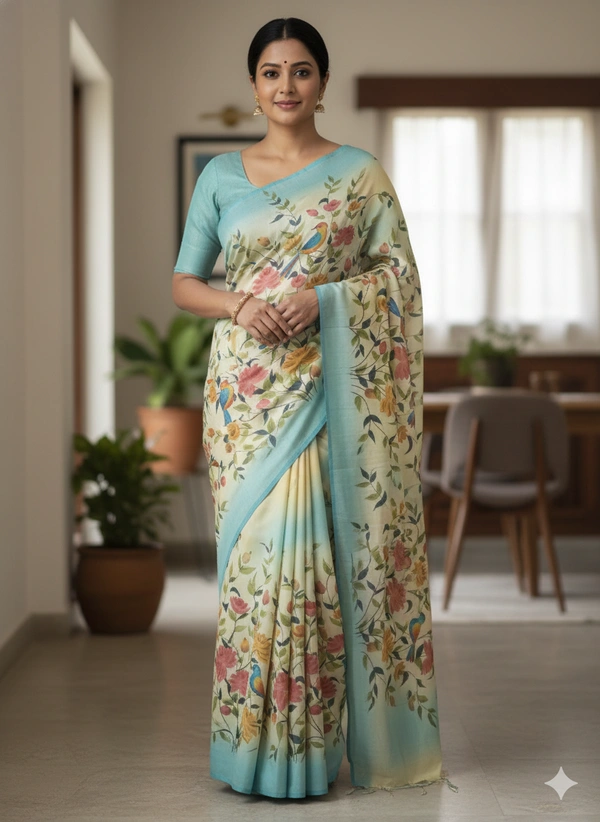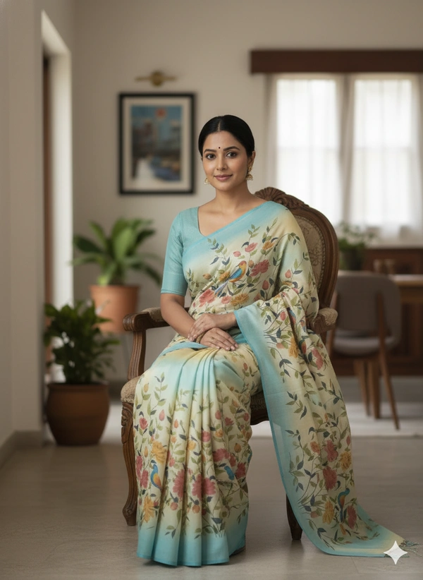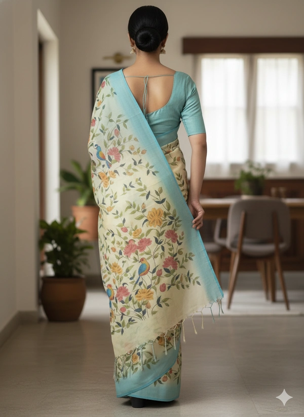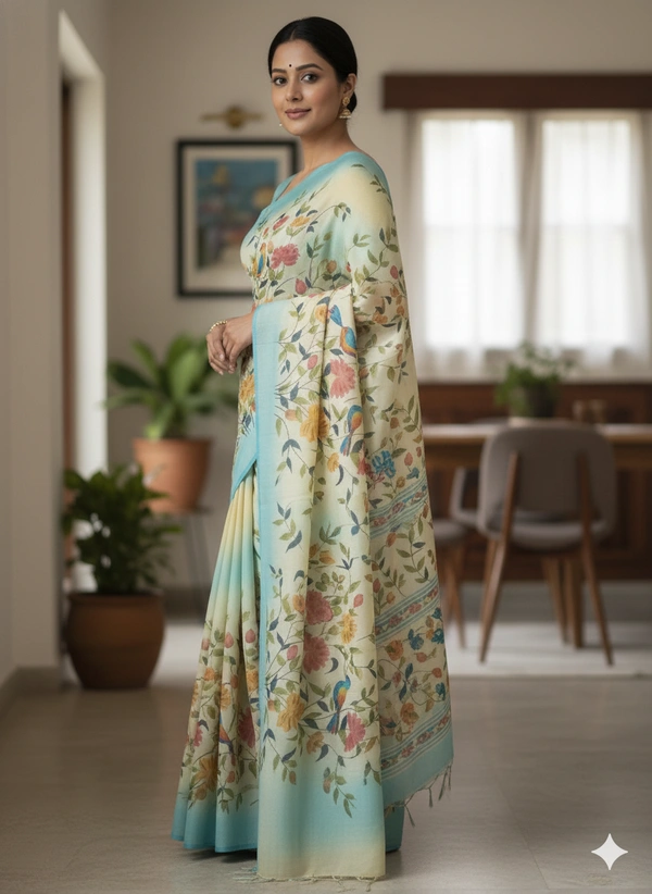 SKU1286 : Elegant Pure Silk Saree – Hand Painted