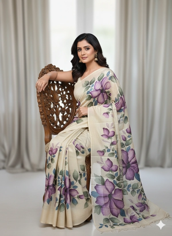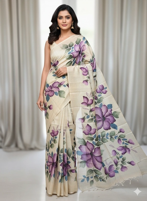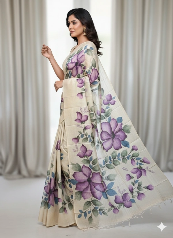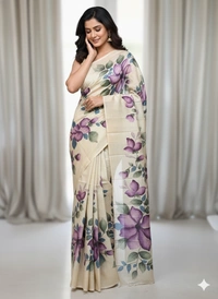 SKU1287 : Elegant Pure Silk Saree – Hand Painted
