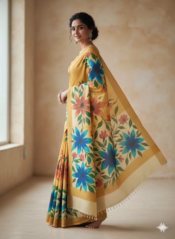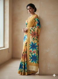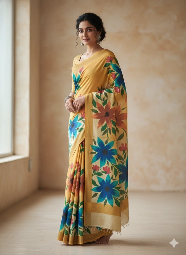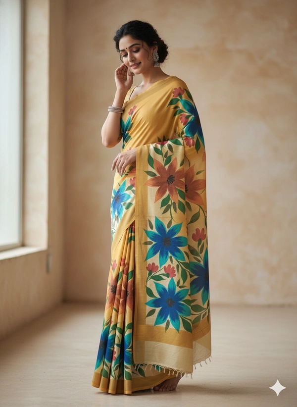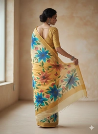 SKU1290 : Elegant Pure Silk Saree – Hand Painted