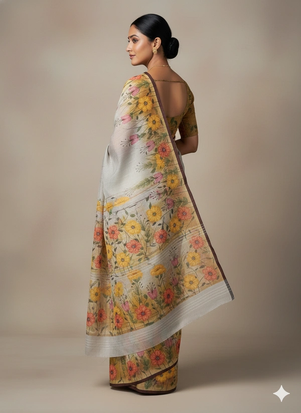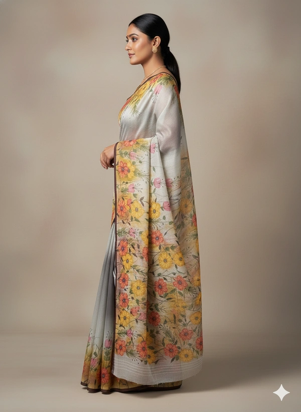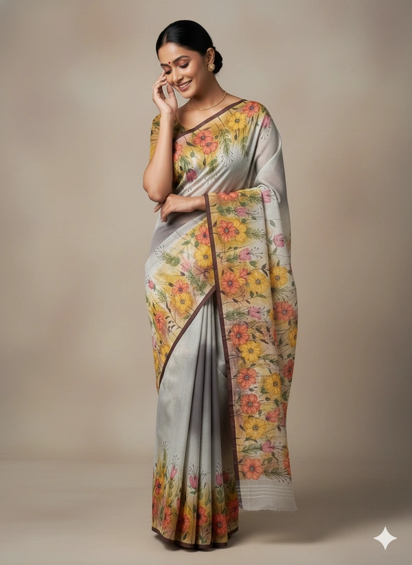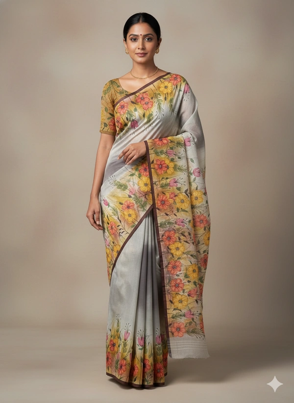 SKU1291 : Elegant Pure Silk Saree – Hand Painted
