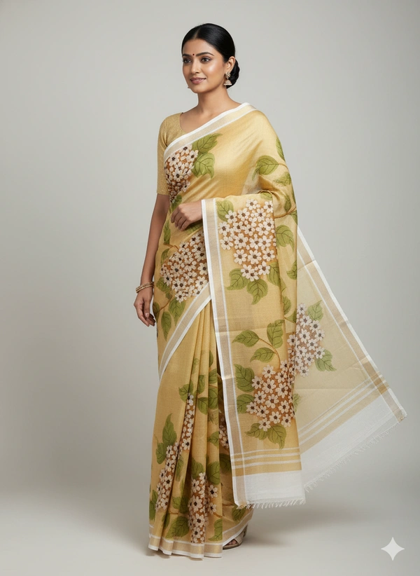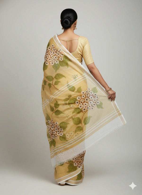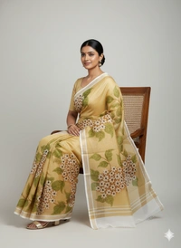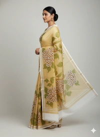 SKU1296 : Elegant Pure Silk Saree – Hand Painted