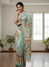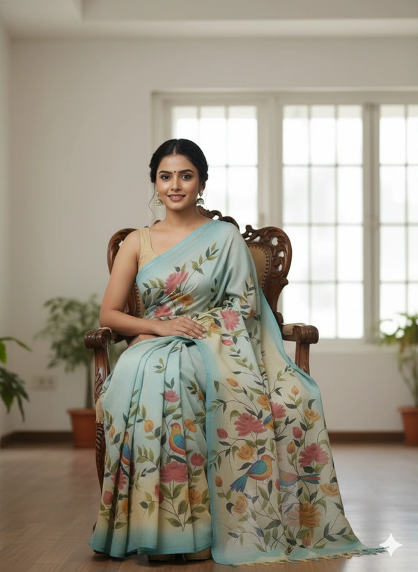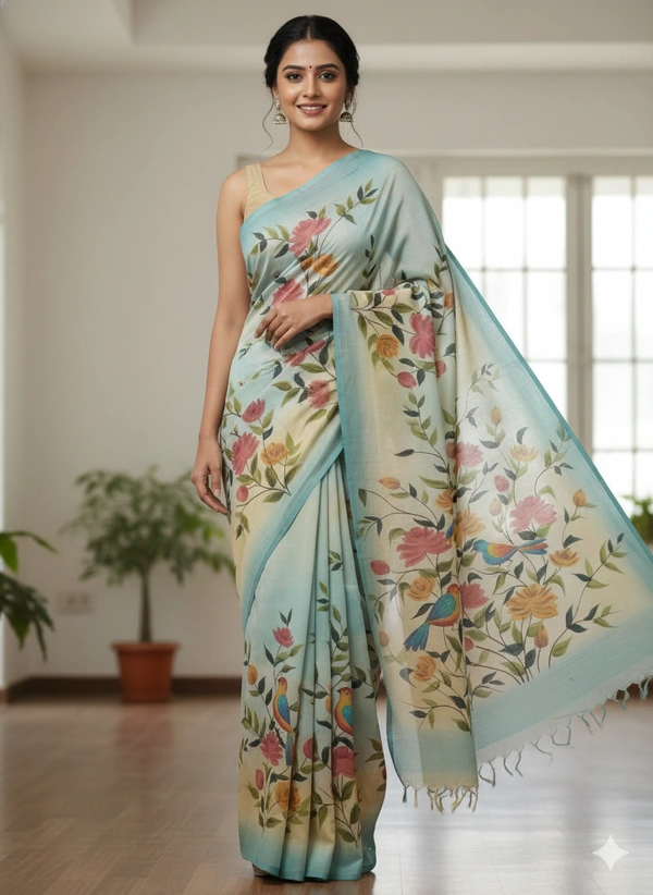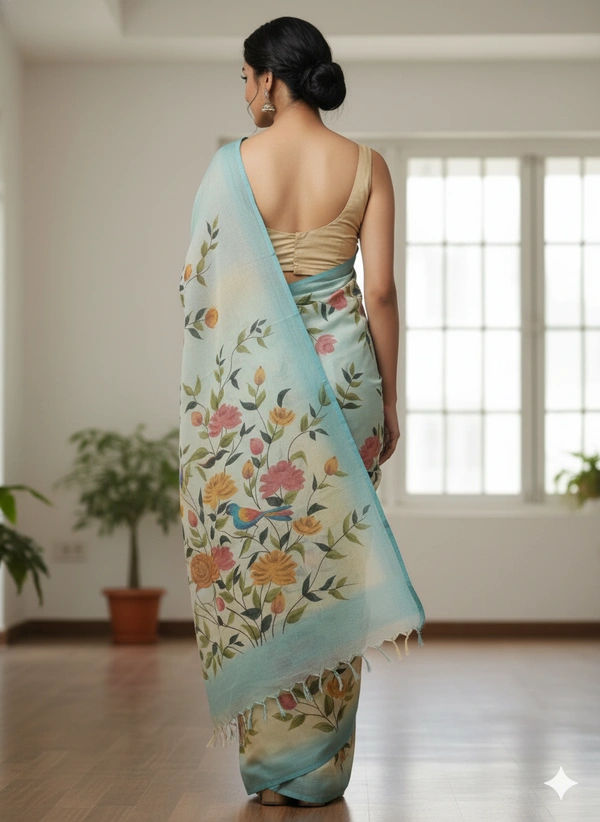 SKU1298 : Elegant Pure Silk Saree – Hand Painted