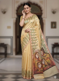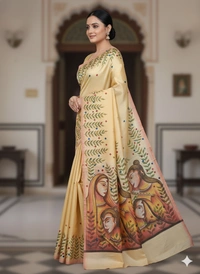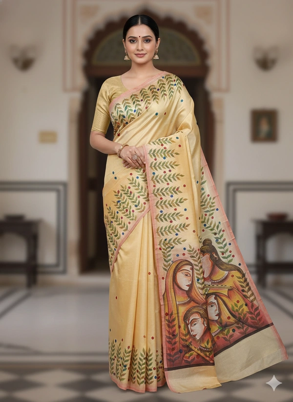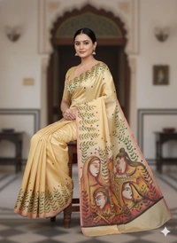 SKU1302 : Elegant Pure Silk Saree – Hand Painted
