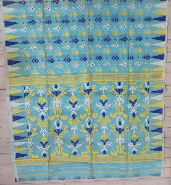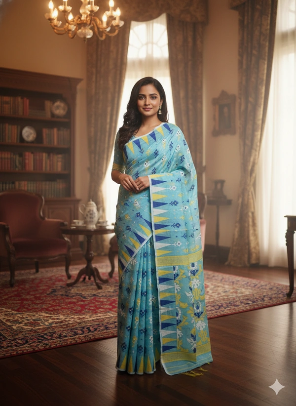 This Pure Jamdani Saree is a celebration of fine handloom artistry. Woven with precision and care, it showcases beautiful traditional motifs on a soft, lightweight fabric that feels as good as it looks. Elegant, breathable, and effortlessly graceful, this saree is perfect for those who love timeless style with a touch of heritage.