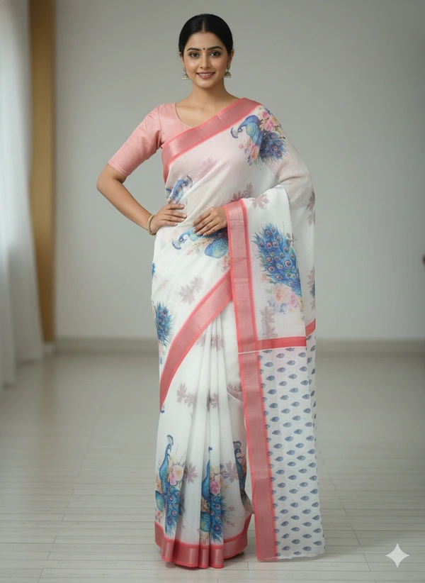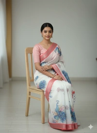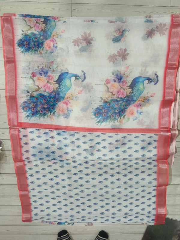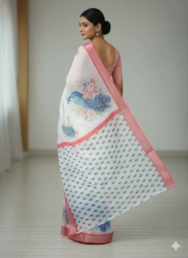 Linen Saree, Bird Print