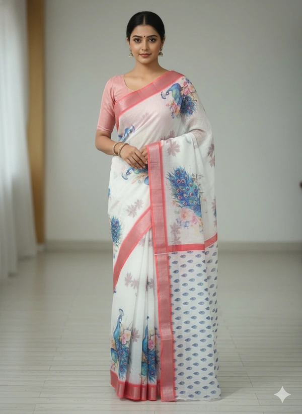 Pure Linen Saree refers to a saree made entirely from linen fibers, which are derived from the flax plant. These sarees are known for their breathability, elegance, and natural texture, making them a favorite, especially in warm and humid climates.