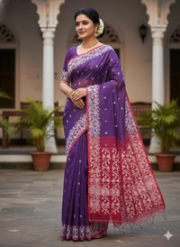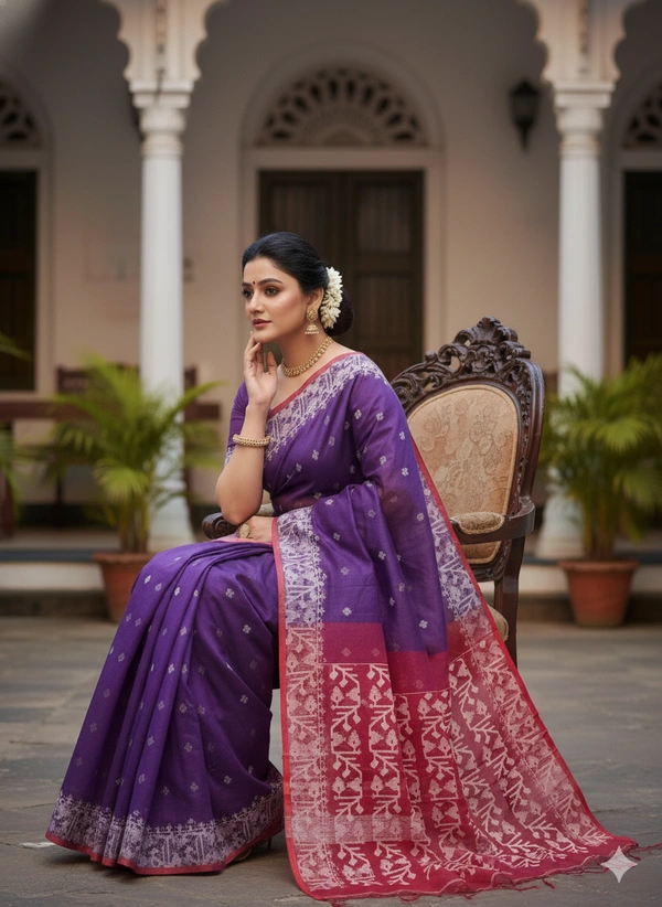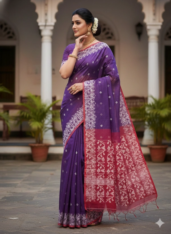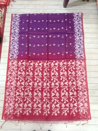 Indulge in timeless elegance with this luxurious Resham Jamdani saree, meticulously crafted by skilled artisans. Featuring intricate resham thread motifs woven seamlessly into the fabric, this saree showcases the beauty of heritage craftsmanship with a modern touch. Soft, airy, and graceful in texture, it drapes effortlessly and adds a regal charm to your look. A perfect choice for festive wear, cultural events, and special occasions.