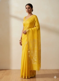 Indulge in timeless elegance with this luxurious Resham Jamdani saree, meticulously crafted by skilled artisans. Featuring intricate resham thread motifs woven seamlessly into the fabric, this saree showcases the beauty of heritage craftsmanship with a modern touch. Soft, airy, and graceful in texture, it drapes effortlessly and adds a regal charm to your look. A perfect choice for festive wear, cultural events, and special occasions.