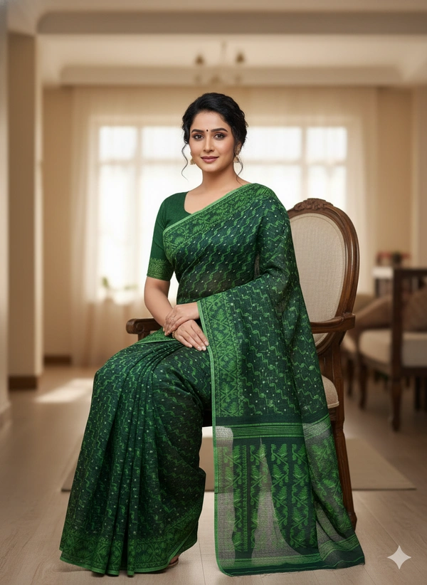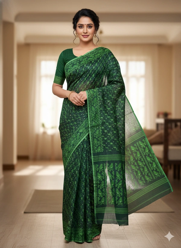 SKU1343 : Elegant Handwoven Jamdani Saree – Traditional Bengali Weave