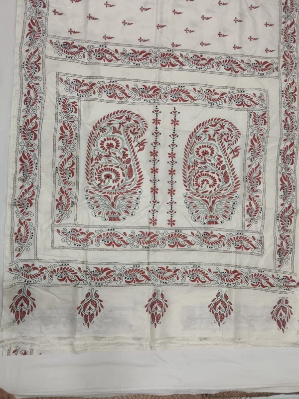 Export Quality Silk Fabric, All Over Body Handcrafted Kantha Stitch With Designer Border Patli & Pallu