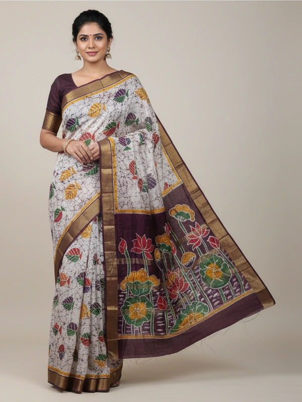 SKU0923 : Pure Chanderi Silk – Hand Batik Bengal Traditional