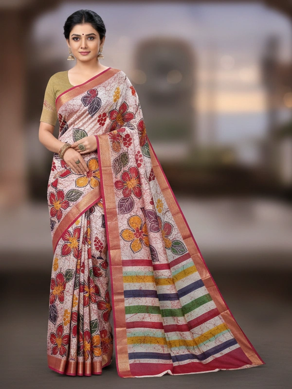 SKU0959 : Pure Chanderi Silk – Hand Batik Bengal Traditional