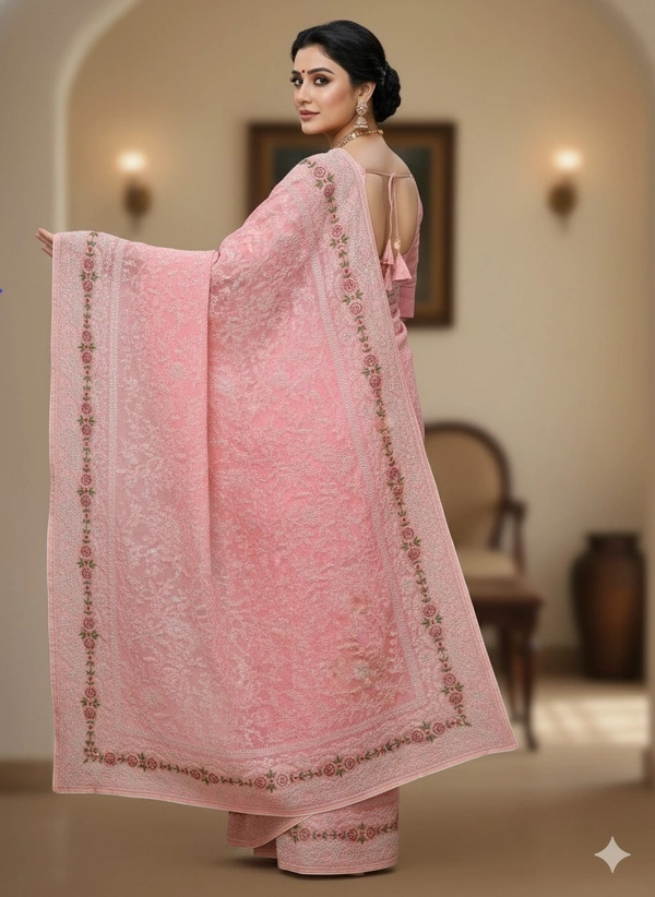 This Lucknowi Chikankari saree is crafted with fine hand embroidery on soft and lightweight fabric, offering both comfort and elegance. The breathable material makes it ideal for all-day wear, especially in warm weather. Suitable for casual outings, office wear, and festive occasions, this saree is a perfect blend of tradition and modern style.