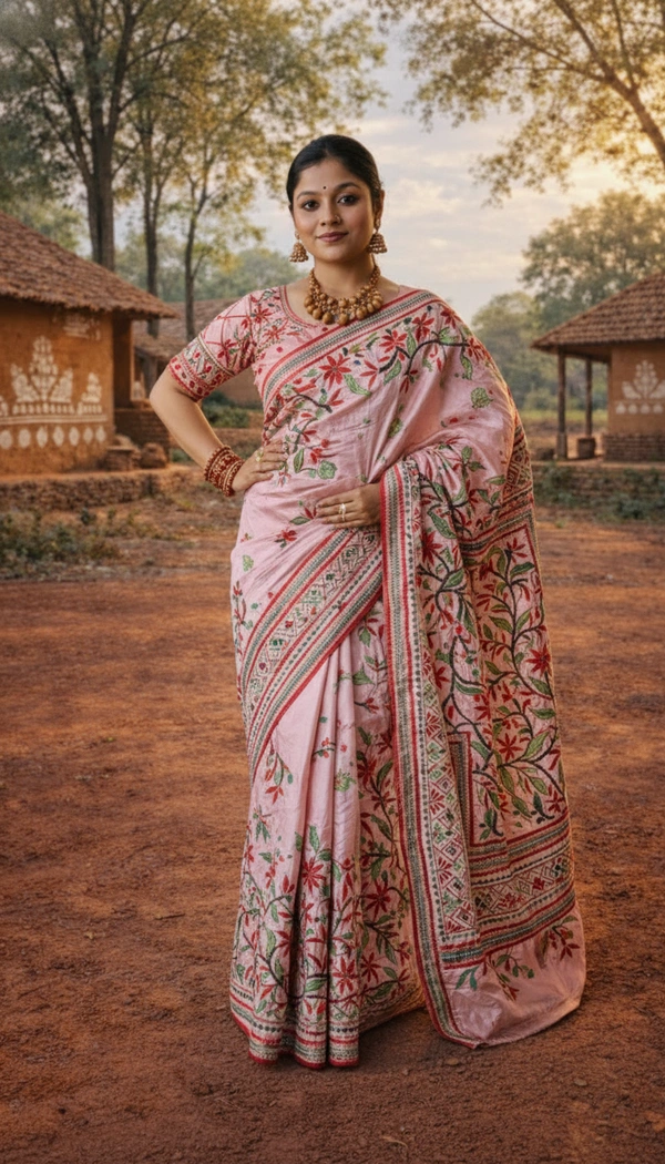 The rich silk fabric drapes effortlessly, making it perfect for long celebrations, weddings, festive occasions, and formal gatherings. Subtle detailing and refined borders add a touch of sophistication, while the vibrant yet graceful color palette enhances its regal charm.