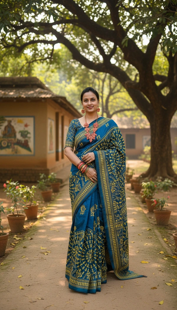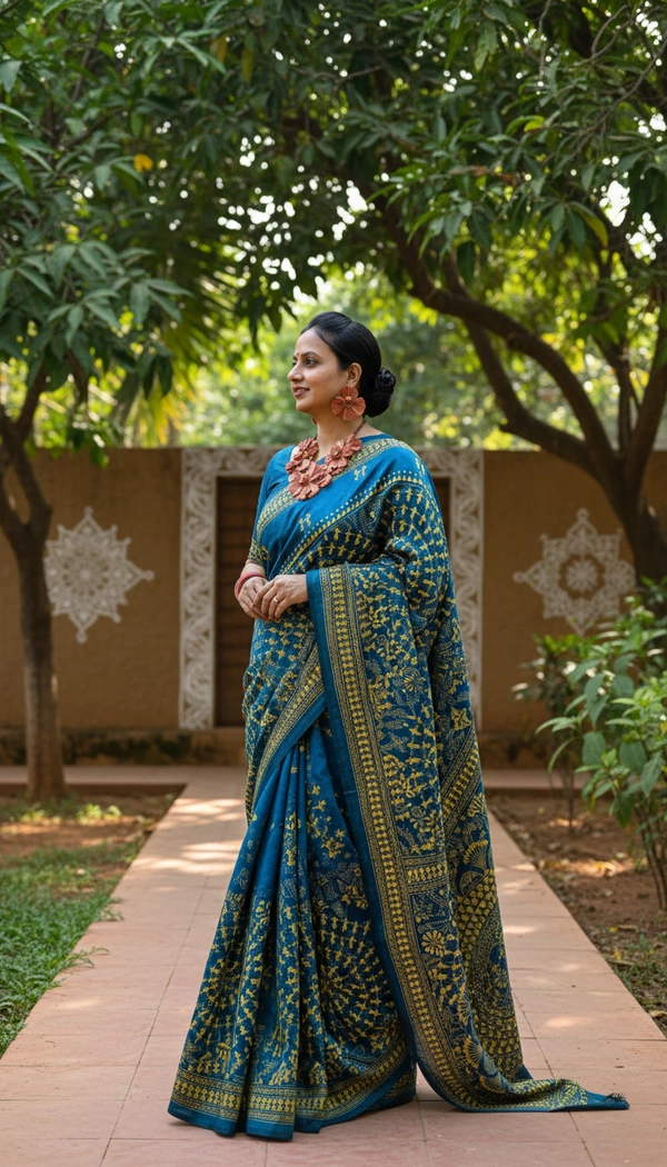 The rich silk fabric drapes effortlessly, making it perfect for long celebrations, weddings, festive occasions, and formal gatherings. Subtle detailing and refined borders add a touch of sophistication, while the vibrant yet graceful color palette enhances its regal charm.