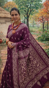 This exquisite fabric is woven from premium blended Bangalore silk, offering a smooth drape and refined sheen. Enhanced with handcrafted Kantha embroidery, the delicate running stitches create a rich texture and timeless elegance. Each piece reflects skilled artisanal craftsmanship, making it a statement of understated luxury.