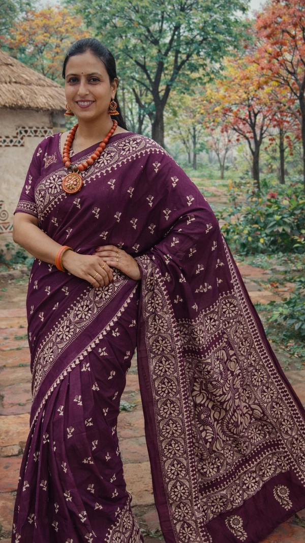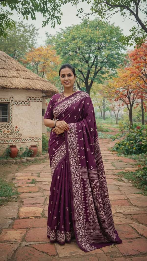 Blended Bangalore Silk With Handcrafted Kantha Embroidery.