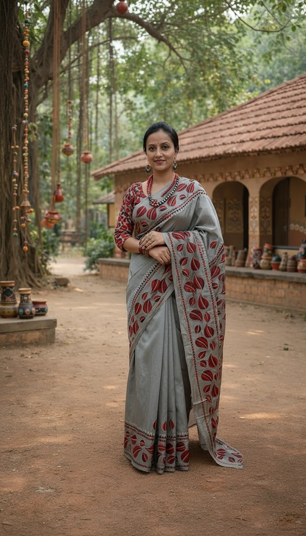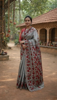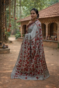 This exquisite fabric is woven from premium blended Bangalore silk, offering a smooth drape and refined sheen. Enhanced with handcrafted Kantha embroidery, the delicate running stitches create a rich texture and timeless elegance. Each piece reflects skilled artisanal craftsmanship, making it a statement of understated luxury.