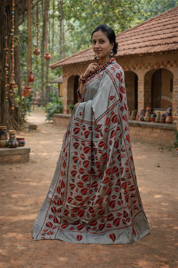 Blended Bangalore Silk With Handcrafted Kantha Embroidery.