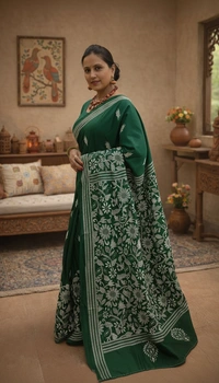 This exquisite fabric is woven from premium blended Bangalore silk, offering a smooth drape and refined sheen. Enhanced with handcrafted Kantha embroidery, the delicate running stitches create a rich texture and timeless elegance. Each piece reflects skilled artisanal craftsmanship, making it a statement of understated luxury.