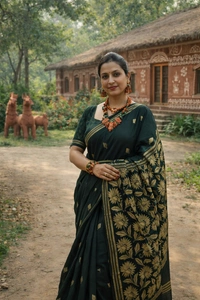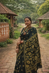 This exquisite fabric is woven from premium blended Bangalore silk, offering a smooth drape and refined sheen. Enhanced with handcrafted Kantha embroidery, the delicate running stitches create a rich texture and timeless elegance. Each piece reflects skilled artisanal craftsmanship, making it a statement of understated luxury.