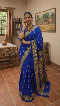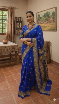 SKU1399 : Blended Bangalore Silk with Handcrafted Kantha Stitch